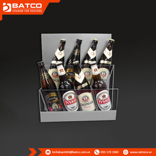 Kệ để rượu mica tại Batco Việt Nam có thể được gia công uốn, tạo hình, khoan lỗ,... thành nhiều kiểu dáng khác nhau, đảm bảo phù hợp với các sản phẩm trưng bày.