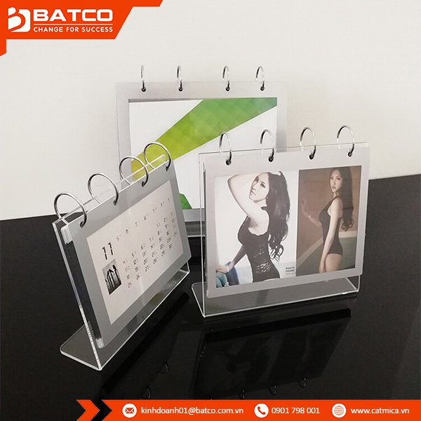 Sản phẩm đế lịch để bàn tại Batco được làm từ chất liệu nhựa acrylic (mica) nên có thể được gia công thành nhiều hình dáng khác nhau như: chữ L, hình chữ V, chữ T,...