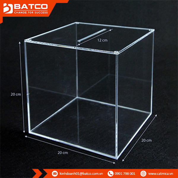 Hòm phiếu mica tại Batco thường được sản xuất từ nhựa mica trong suốt để đảm bảo sự công bằng, minh bạch trong quá trình bốc thăm. Ngoài ra, quý khách cũng có thể dán thêm chữ decal có tên sự kiện, tên doanh nghiệp, khẩu hiệu,... để quảng bá thương hiệu của mình.
