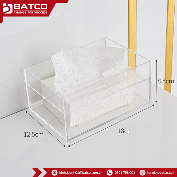 - Kích thước: Hộp đựng giấy ăn mica có thể được gia công theo nhiều kích thước khác nhau.