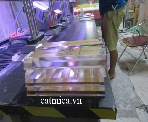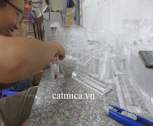 - Phần đế: là mica dày 20mm; 30mm; 18mm,... tùy theo yêu cầu của khách hàng