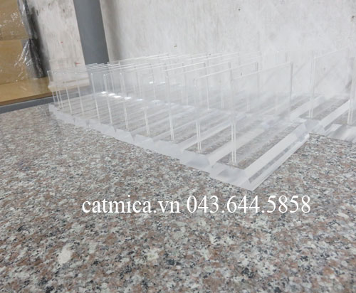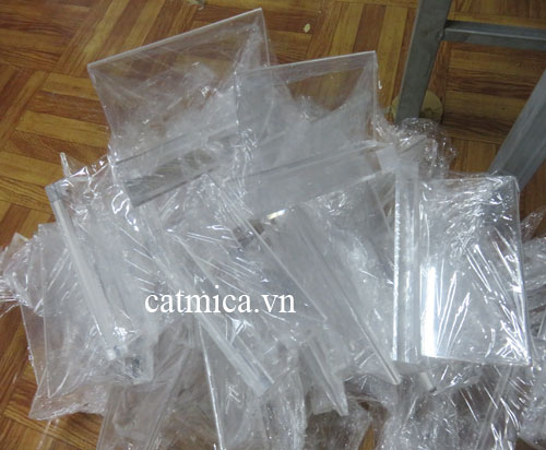 - Phần thân: Là tấm mica trong 2mm ; 2,8mm hoặc 3mm cắt uốn gập đôi lại.